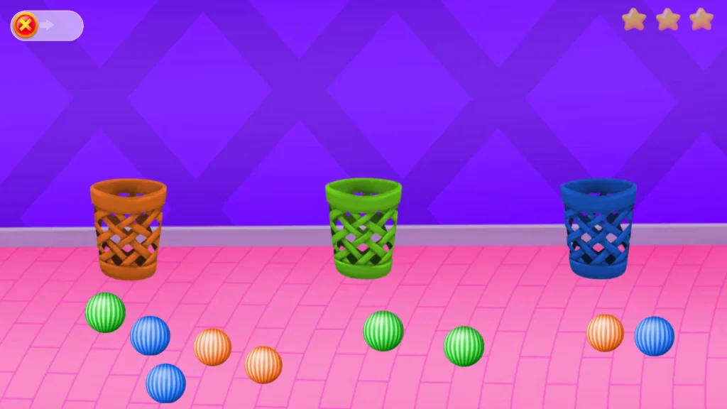 یک بازی رنگارنگ و جذاب که روی هماهنگی چشم و دست و تمرکز روی دستهبندی کار میکنه. در این بازی، کودک باید توپ ها رو با دقت به سبد همرنگ خودشون منتقل کنه. شاید ساده به نظر برسه، اما همین تمرینِ تطبیق بصری و دست هبندی شهودی، پایه های تمرکز منطقی رو در ذهن کودک میسازه و بهشون نظم ذهنی رو یاد میده.